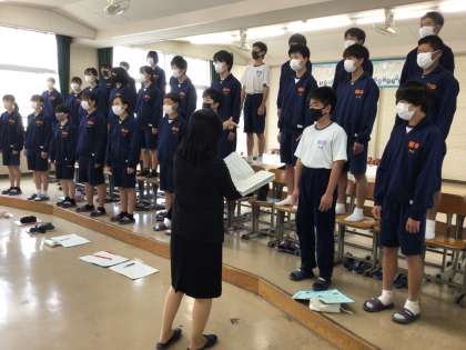 10/31(月)学級別合唱指導会2年5組 公開日 2022/10/31 更新日 2022/10/31 輝く朝中生! 後半になるにつれて、ハーモニーがとてもきれいになってきました。「きみのゆめがひとつ」の部分は、”き”と”ひ”のところに重みをもって歌うとよいというアドバイスを受けましたね。2年生の声は、深いいろんな色合いがあり、とてもきれいな声が聞かれます。当日も楽しみです。 2年