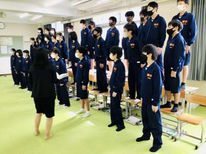10/31(月)学級別合唱指導会1年4組 公開日 2022/10/31 更新日 2022/10/31 各学年から クレッシェンドはどのクラスも指摘がありました。 とくにこの14学級は、エメラルドのところのクレッシェンドは大切にいきましょう。そうすれば、きっと良い形になっていきますよ。当日を楽しみにしています。 1年