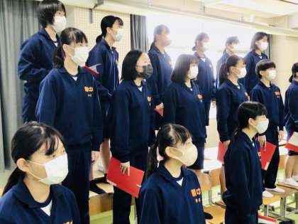 10/31(月)学級別合唱指導会2年8組 公開日 2022/10/31 更新日 2022/10/31 各学年から 特に、「あかしがみえる」の部分のアルトの音程を最後まで確認する必要があるようです。 伸ばしが短い部分がないか、確認を最後までやるとよいでしょう。明後日、合唱コンクールの歌い切った顔を見るのが楽しみです。頑張ってください。 2年