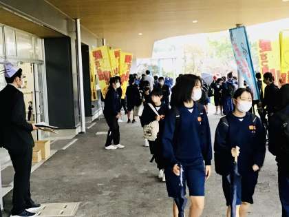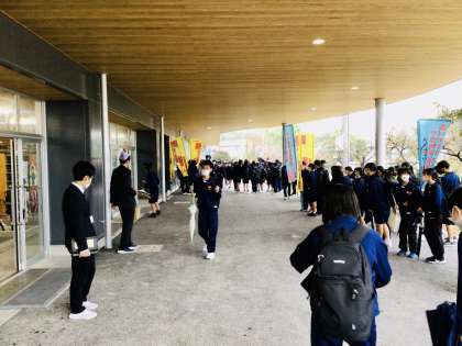 まだ、あいさつ運動をしている生徒は少ないですが、・・かぶっていますね。