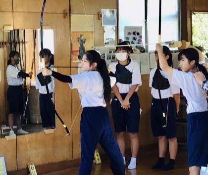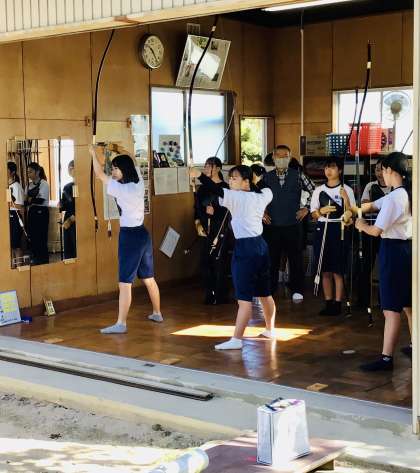 弓道部の練習の様子です。集中力を高めて練習を重ねています。