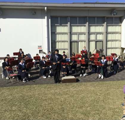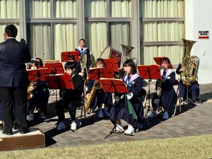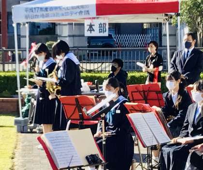 吹奏楽部もボランティア活動を行いました。 閉会式前の演奏です。