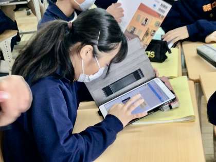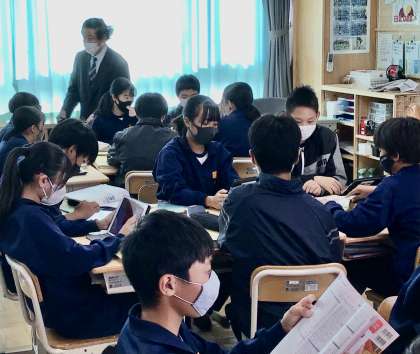 今日の研究授業(英語)は、タブレット端末を有効活用しながら、授業を進めていました。