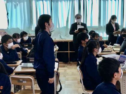 今日の研究授業(英語)を豊田市中の選ばれた新任の先生が見学をしました。