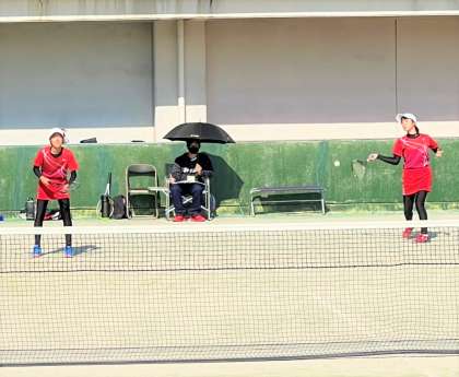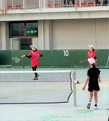 ソフトテニス部女子の戦いの様子です。
