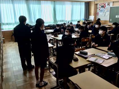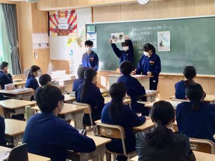 11/15(火)朝の会 連絡 生活向上委員より 公開日 2022/11/15 更新日 2022/11/15 各学年から 朝の会の連絡です。生活向上委員会から、フォーマルウエアーの中の防寒具についての説明がありました。皆さん立派に話ができています。1年生です。 1年