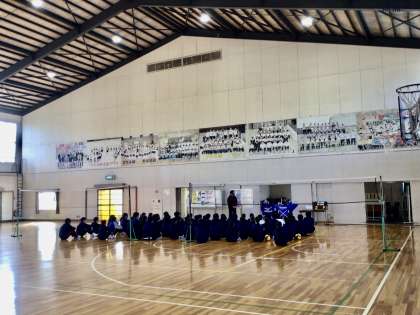 11/15(火)2年5組6組 保健体育 公開日 2022/11/15 更新日 2022/11/15 各学年から 2年生の保健体育、バレーボールです。 最初に、今日学ぶべきことを知り、目標を立てるところからスタートです。 2年