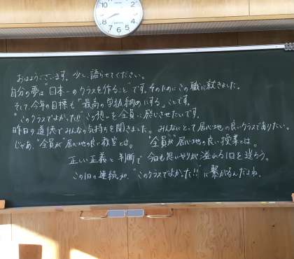 2年生の学級黒板より 2年1組の黒板メッセージより。
