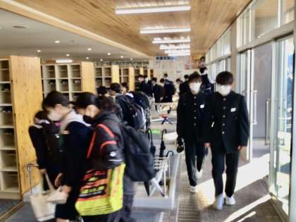 11/17(木)午前7時45分の昇降口 公開日 2022/11/17 更新日 2022/11/17 特別活動 毎日、7時45分に昇降口が開きます。 今日は、全員朝中フォーマルウエアーで、定期テストを受けます。 いち早く、教室へ行き、テスト直前の確認をしようとする生徒たちです。 1年 2年 3年 特別支援学級
