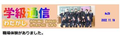 1,2,3学級通信最新号をお届けします 公開日 2022/11/18 更新日 2022/11/18 お知らせ 本日配付予定の1,2,3学級通信最新号をいち早くお届けします ↓↓↓↓ ☆学級通信28 特別支援学級