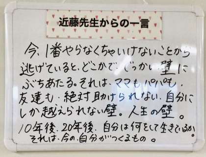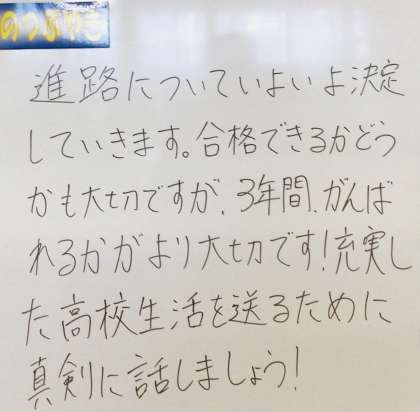 学年黒板からも進路という文字が見えてきます。直近の高校等の入試から、10年後20年後を見据えた進路のことまで、・・・