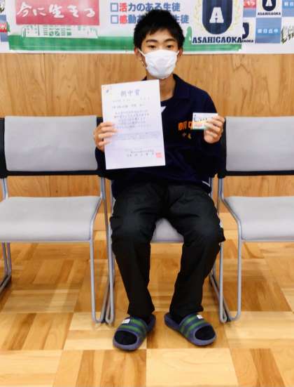 今日の朝中賞です。 15学級と16学級の生徒さんです。
