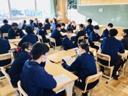 話し合いを進めています。生徒同士の関わり合いって大切ですね。