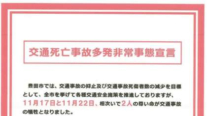 豊田市では、先月11月に2名もの尊い命がなくなっております。