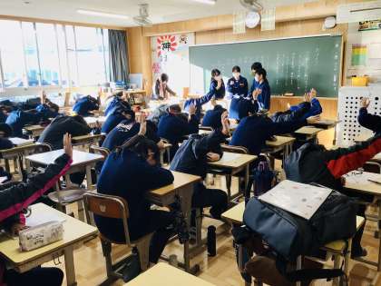 1年1組と2組、3組の朝の学級会(話し合い)の様子です。