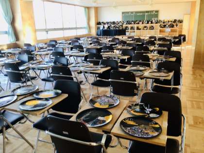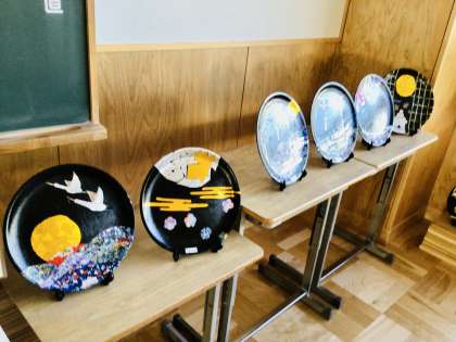 3年生の「至楽展」の様子です。 3年生は、今年も飾り皿です。