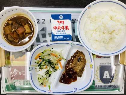 12/5(月)本日の給食は!! 公開日 2022/12/05 更新日 2022/12/05 校長室から 今日の給食は、こちらです。 ⭐️白菜の青菜和え ⭐️鯖の生姜煮 ⭐️根菜の味噌煮 ⭐️ご飯と牛乳でした。