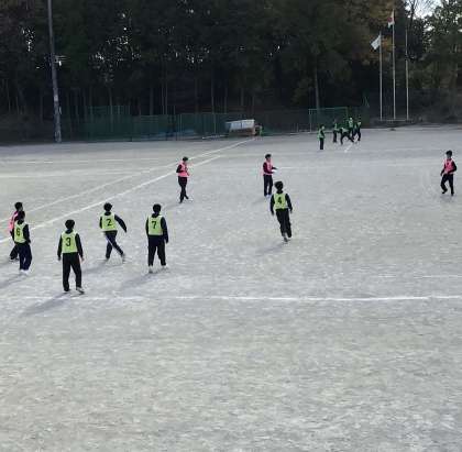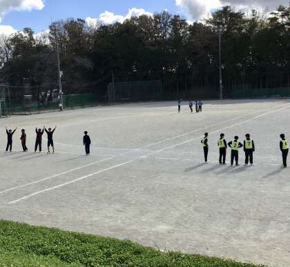 3年7組、8組の保健体育です。 アルティメットを行っています。