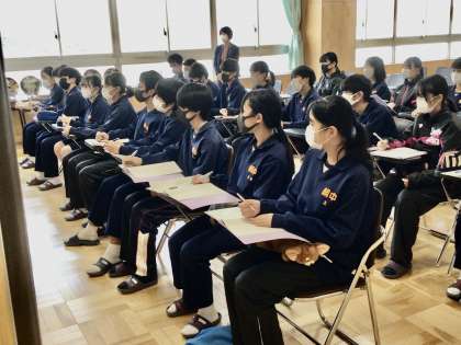 12/7(水)社会人に学ぶ会2年生11 公開日 2022/12/07 更新日 2022/12/07 特色ある学校づくり推進事業 犬の訓練士の方にもきていただきました。 犬が一緒だともっとよかったですね。 犬・猫の気持ちがわかるかも? トレーニングの基礎を学ぼう!!です。 2年 特色ある学校づくり