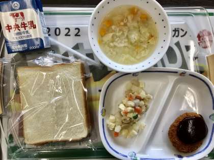 今日は、食パンに具を挟んで、サンドヴィッチにして食べました。 今日の給食はこちらです。