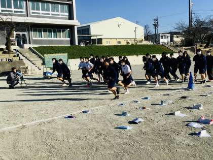 12/9(金)17C18C保健体育 公開日 2022/12/09 更新日 2022/12/09 校長室から 笛がなり、スタートをしました。8分間は短いようで長いです。皆頑張りました。私も一緒に走りました。 1年