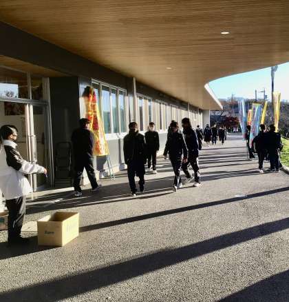 12/12(月)朝の登校の様子です 公開日 2022/12/12 更新日 2022/12/12 特別活動 本日は、学習診断テストです。3年生は、挨拶運動をせずに、すぐに教室に向かい、学習を進めます。今日は、3年生制服の日(朝中フォーマルウエアー日)です。