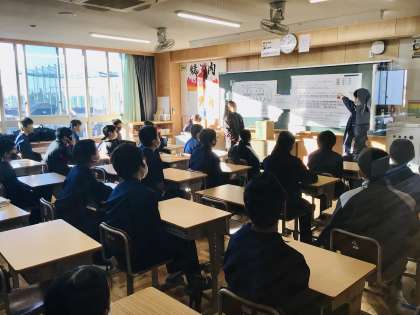 12/12(月)11c・12cの教室より 公開日 2022/12/12 更新日 2022/12/12 各学年から 1年1組、2組の教室です。 本日の1年生学年行事についてリーダーがクラスの話をしています。 1年