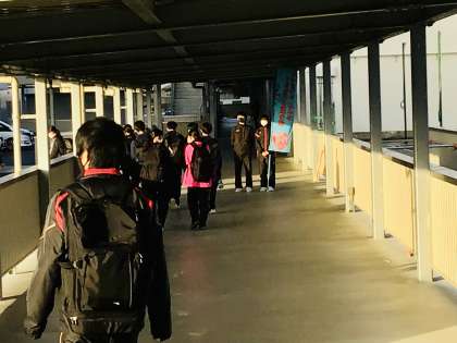 校舎の東側でも挨拶運動を盛んに行っています。