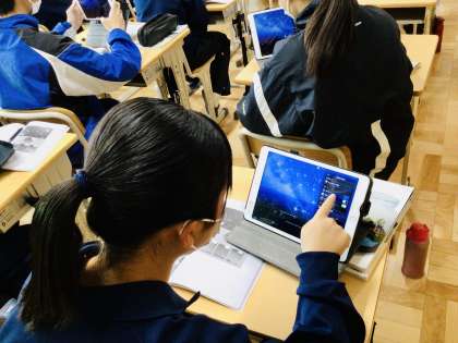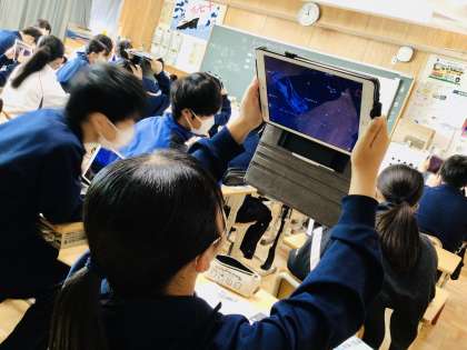 3年生も皆、興味をもって、タブレットで星空を見ています。