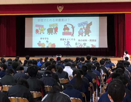 12月14日(水)に学校保健人権大会が、各学年ごとに体育館で行われました。保健委員の生徒たちが中心となって、事前のアンケート調査から、司会進行、発表を行いました。