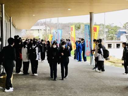 寒い中ですが、挨拶運動を進めています。