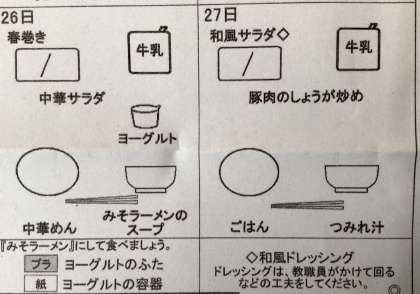 今日の給食と明日の献立