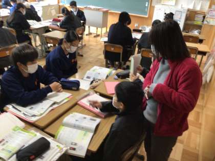 1年8組の家庭科の授業です。持続可能な衣生活について考えました。