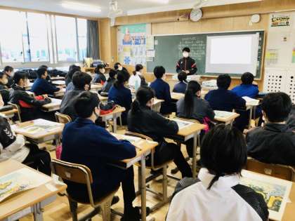 2/7(火)16Cの教室から 公開日 2023/02/07 更新日 2023/02/07 各学年から 3年生の代表生徒が、1年生の教室へ来て、話をしています。 卒業を控えている今、伝えたいことがあるのでしょう。 3年生が、リーダーとして、動いている朝中です。 1年