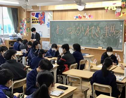 2/7(火)38C オツカレサマ! 公開日 2023/02/07 更新日 2023/02/07 各学年から 3年8組 朝の会 班活動の様子です。 黒板に 「おつかれさま」の文字 昨日の推薦入試、特色入試の皆さんへの オツカレサマ ですね。 3年