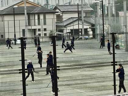男女テニス部の様子です。 いい音がしますね。