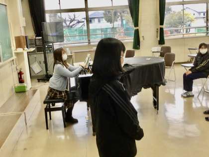 パート練習後に皆で集まって、先日のコンクールのまとめを行っていました。