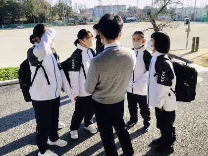 バレー部の1年生が顧問の大橋先生に何かを尋ねています。 温かな雰囲気を感じたので、一枚パチリ。