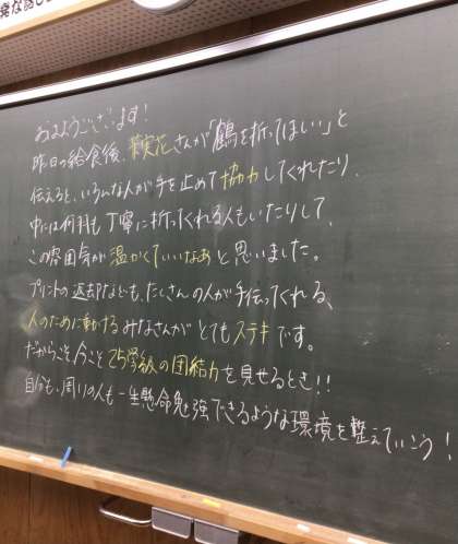 優しい雰囲気の2年5組です。 黒板メッセージより・・・