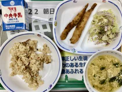 2/10(金)今日の給食は! 公開日 2023/02/10 更新日 2023/02/10 校長室から 今日の給食は、 ✳️ゆかりあえ ⭐️ししゃもフライ(本当は3本です) ✳️三河赤鶏五目ごはん ⭐️かきたま汁 ⭐️牛乳 今日もおいしい給食でした。 校長