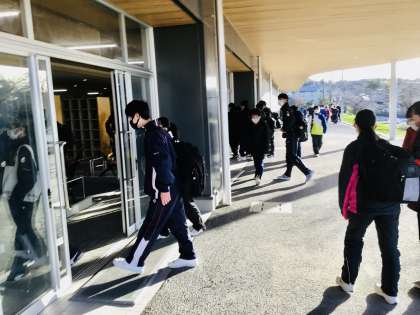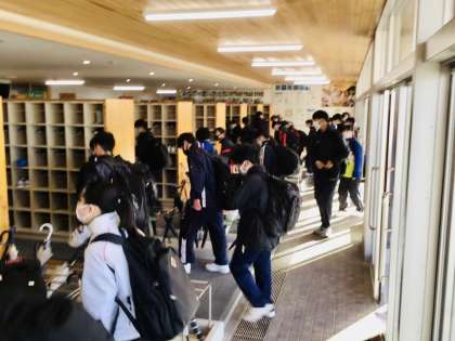 2/14(火)7時45分の様子 公開日 2023/02/14 更新日 2023/02/14 各学年から 明日は、学年末にあたる 後期期末テストが行われます。今週は、朝の挨拶運動はありません。校舎の扉を7時45分に開けたら、生徒たちが、「おはようございます」とたくさん入ってきました。