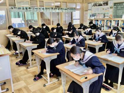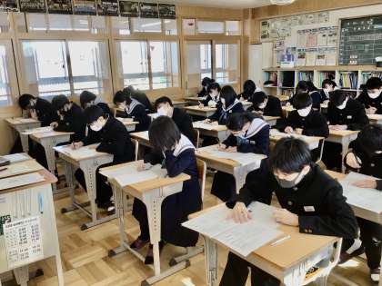 2/16(木)後期期末テスト2日目24C25C26C 公開日 2023/02/16 更新日 2023/02/16 各学年から 2/16(木)後期期末テスト2日目24C25C26C 2年4組 5組 6組のテスト時の様子です。 2年