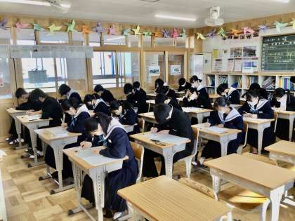 学年掲示板より 2年7組 8組 のテスト時の様子です。