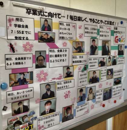 毎日楽しく! やることやって卒業式!! 4階の3年生 掲示板より