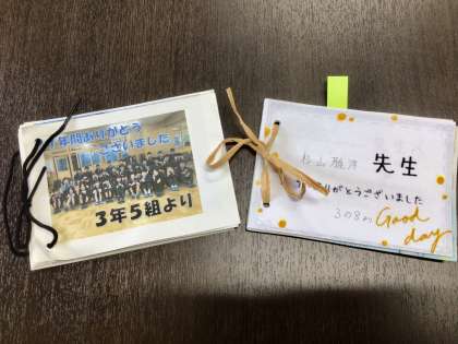 授業の間に生徒たちからいただきました。中を見てみると、とても温かなメッセージが詰まっていました。心遣いをありがとうございます。