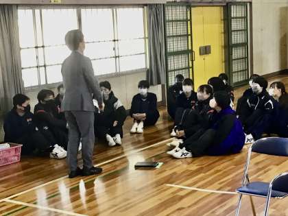 2/22(水)3年生の学年集会での様子3 公開日 2023/02/22 更新日 2023/02/22 各学年から 担任の先生の話をしっかりと聞く生徒 担任の先生とともに証書授与を行う生徒 本格的な練習は、来週の火曜日から始まります。 3年