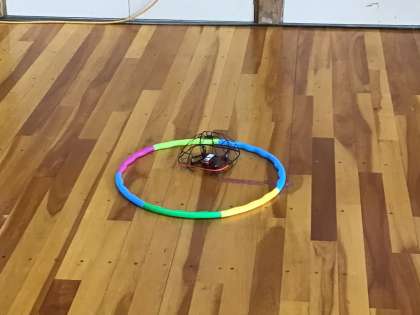 指先を上手に使って、輪の中へドローンを入れることができました。