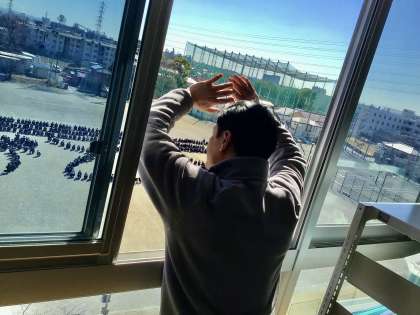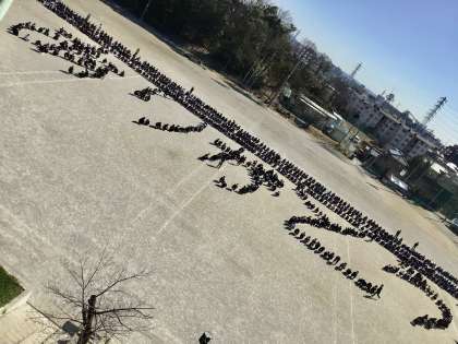 教頭先生に向けて、人文字を作っています。
