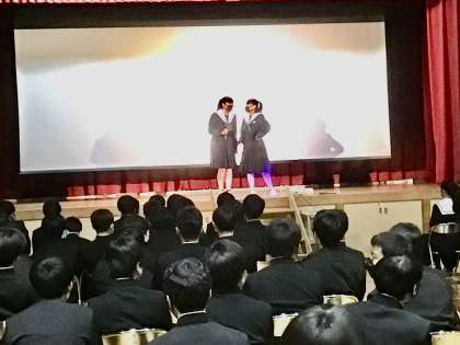 3/1(水)感謝する会 公開日 2023/03/01 更新日 2023/03/01 各学年から 生徒の皆さんの周りの人たちに対する感謝の会です。生徒の思いから生まれました。 この場面は3年生のみんなに言いたい事と言うことで思いっきり叫んでいる場面です。 3年