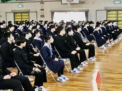 3/2(木)最後の先生の話を聞く生徒たち 公開日 2023/03/02 更新日 2023/03/02 各学年から 先生たちが、学年全体に対して、話をする最後の機会です。 皆、言葉を聞き逃さないように真剣に聞いています。 3年